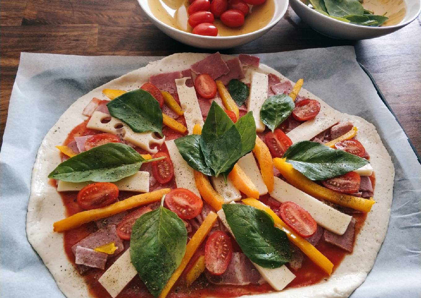 - Bake the pizza at 200°C for 30 min. Enjoy it!