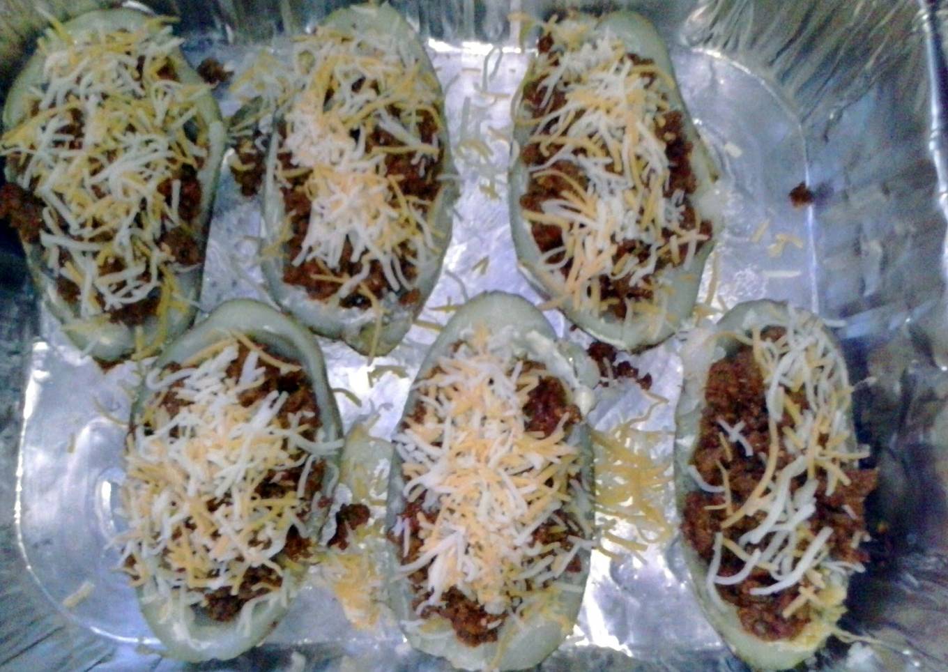 - salt the insides of the potatoes, then add a spoonful of ground beef to all skins