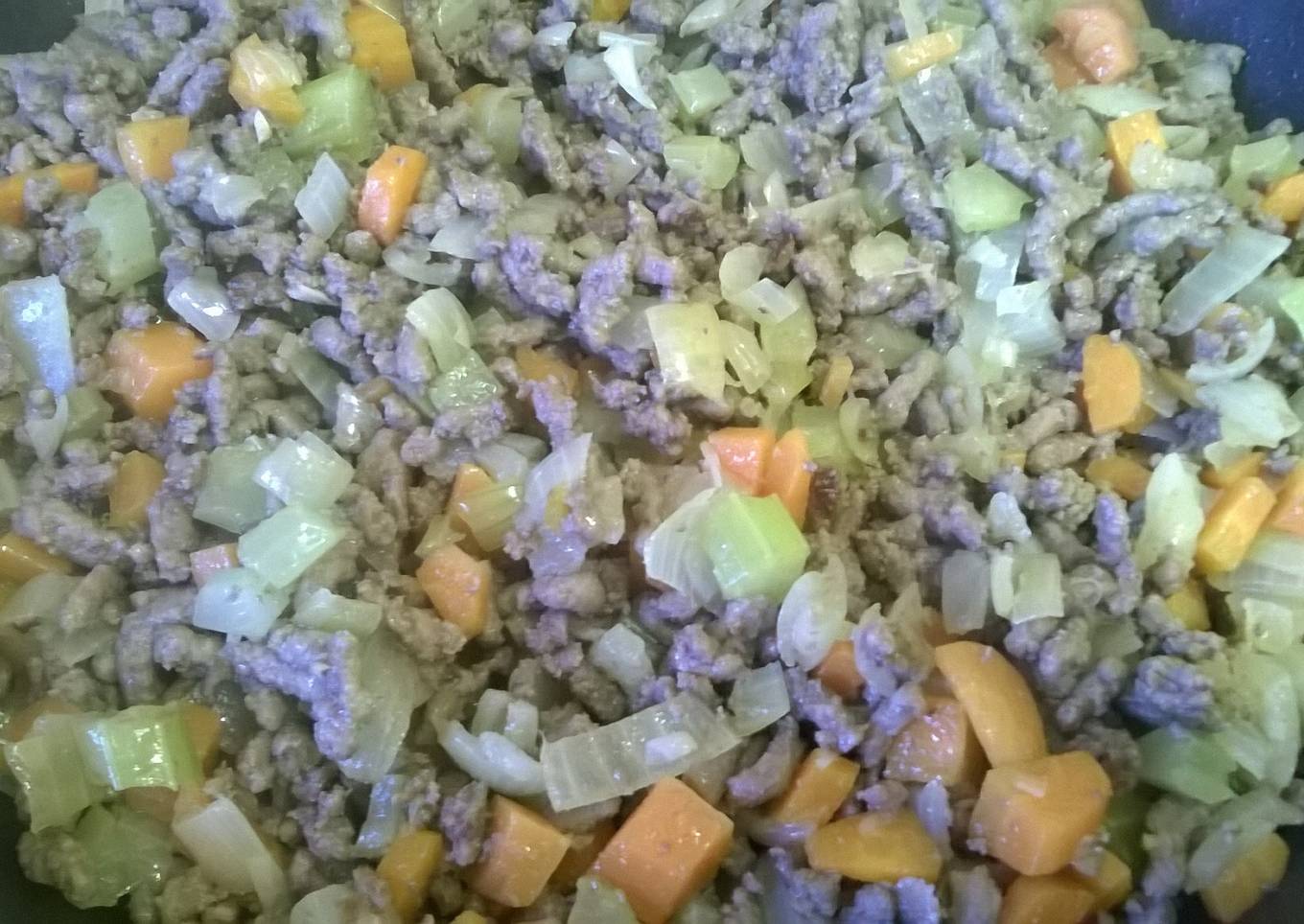 Steps to make Three Way Minced Beef with mirepoix.