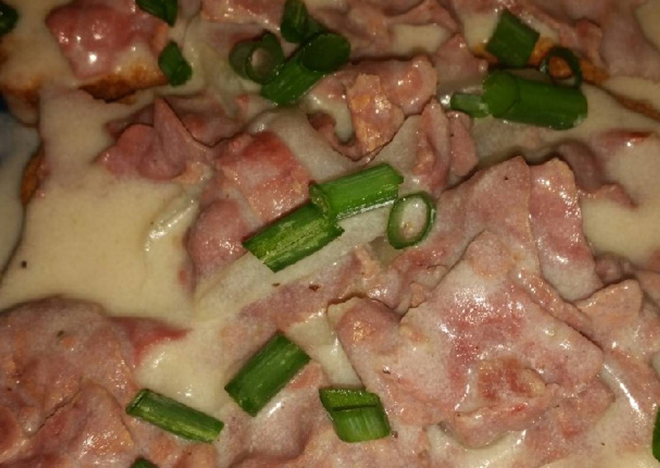 - On a plate, place 2 pieces of toast. Top with chipped beef mixture and optional chopped scallion.