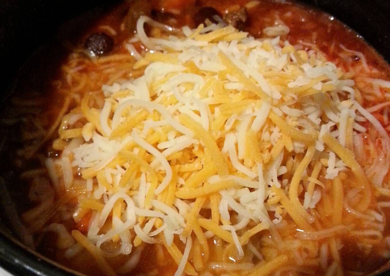 - If desired, crumble a handful of tortilla chips in the bottom of a soup bowl and ladel soup over them. Top with shredded cheese. Enjoy!