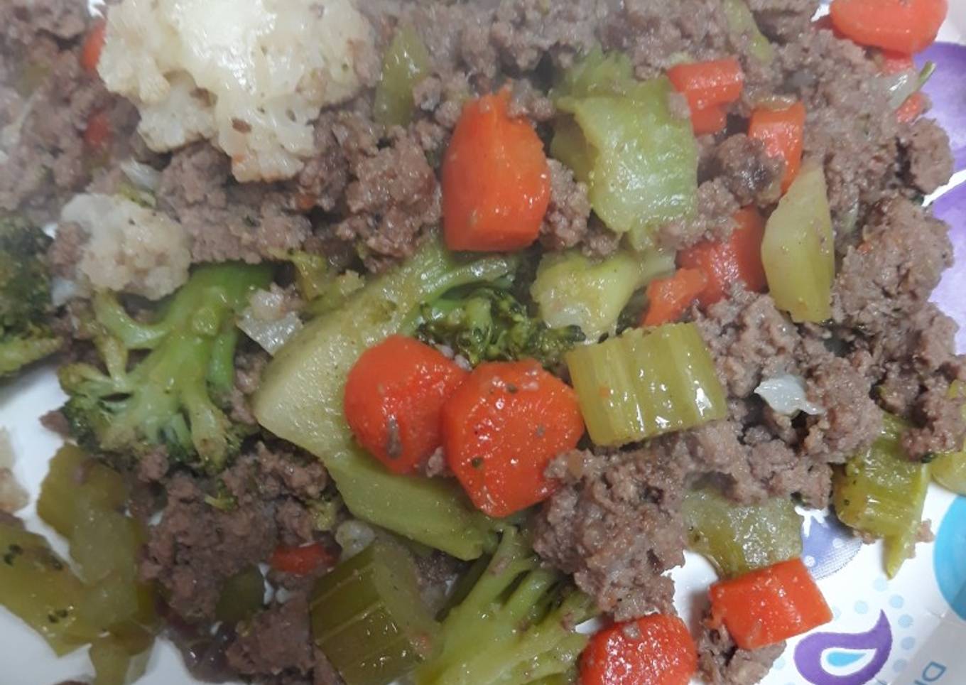 - Sauté for 8 minutes. Add the beef to the vegetables.