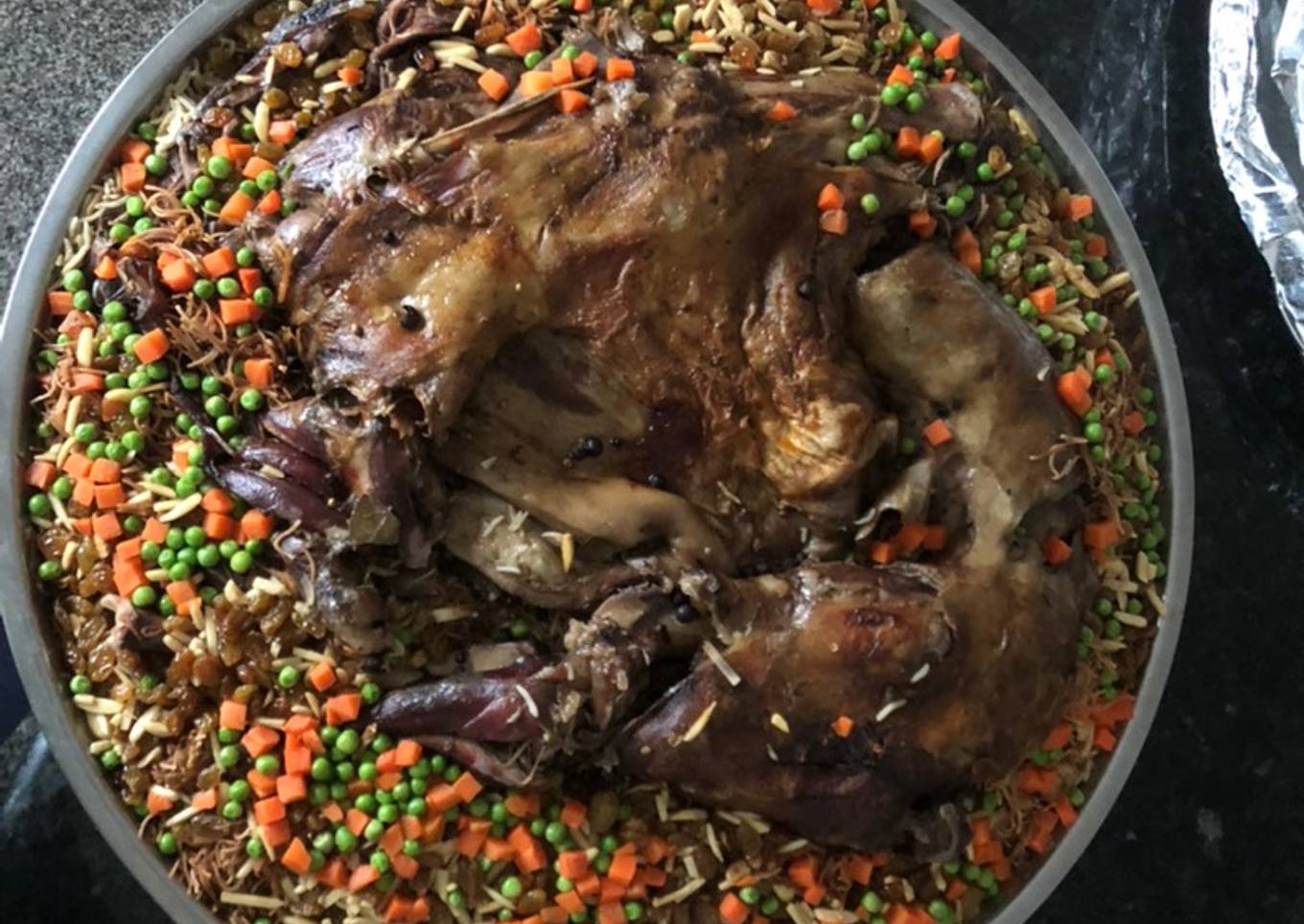 - You change the lamb to A whole chicken cook with all spices I mentioned on top for 1 1/2 hours covered only the last 10 minutes you use broiler