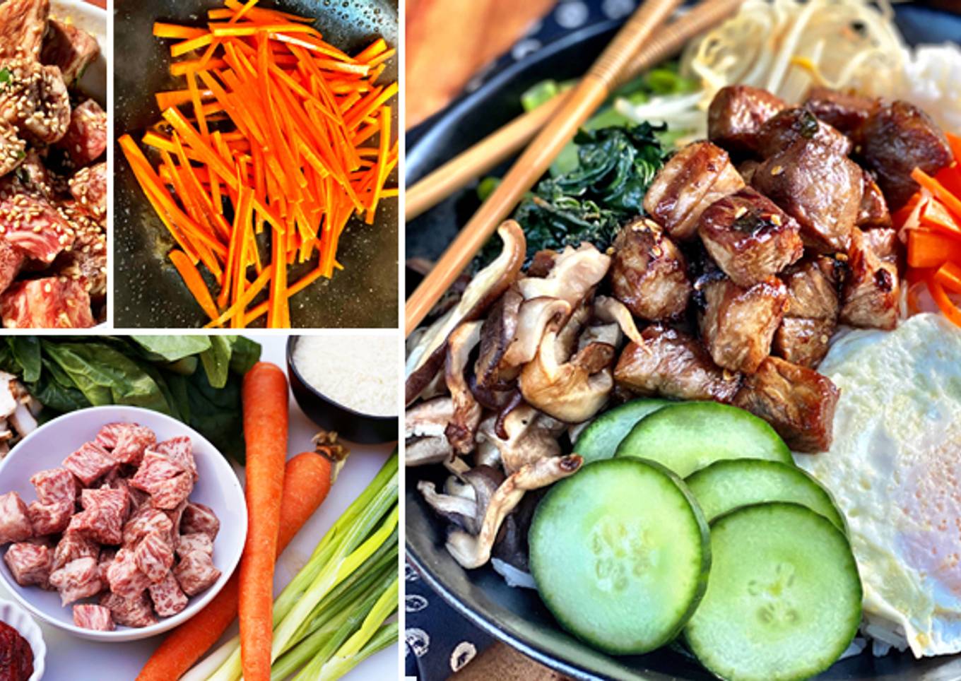 Steps to make Bibimbap with Miyazakigyu Wagyu Beef Cubes