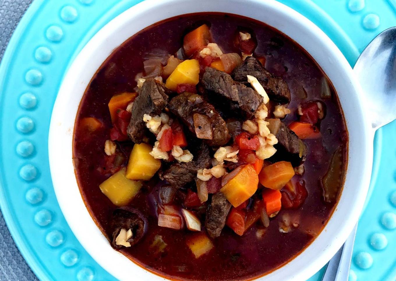 Season the Fullblood Wagyu chuck mock tenders with kosher salt and freshly ground black pepper. Slice the chuck mock tender into 1 1/2 inch cubes (doesn’t have to be that exact size). Heat 2 tablespoons of grapeseed oil in a large Dutch oven. When hot, add the pieces of chuck mock tender to the Dutch oven, and sear meat on all sides until deeply caramelized.Add the diced onion, carrots, and celery. - Cook until slightly browned.Stir in the tomato paste, and let it cook for 3 minutes longer, until fragrant. Add the beef stock, minced garlic, rinsed barley, fresh thyme, and 2 (14 ounce) cans of fire roasted tomatoes.Bring the soup (all ingredients in the Dutch oven) to a boil, and then reduce to a simmer. Cook gently for about 2 hours.