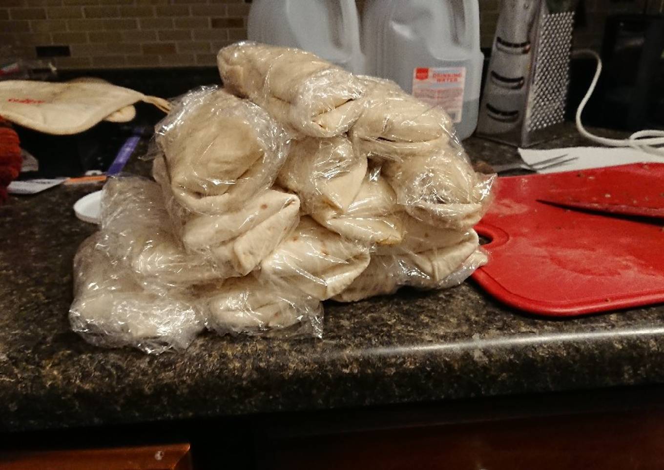 - Make the burritos you will be eating that night first. These are allowed to include tomatos and sour cream on the inside of the burritos. However do not put those inside ones meant for freezing because they will not thaw well...
