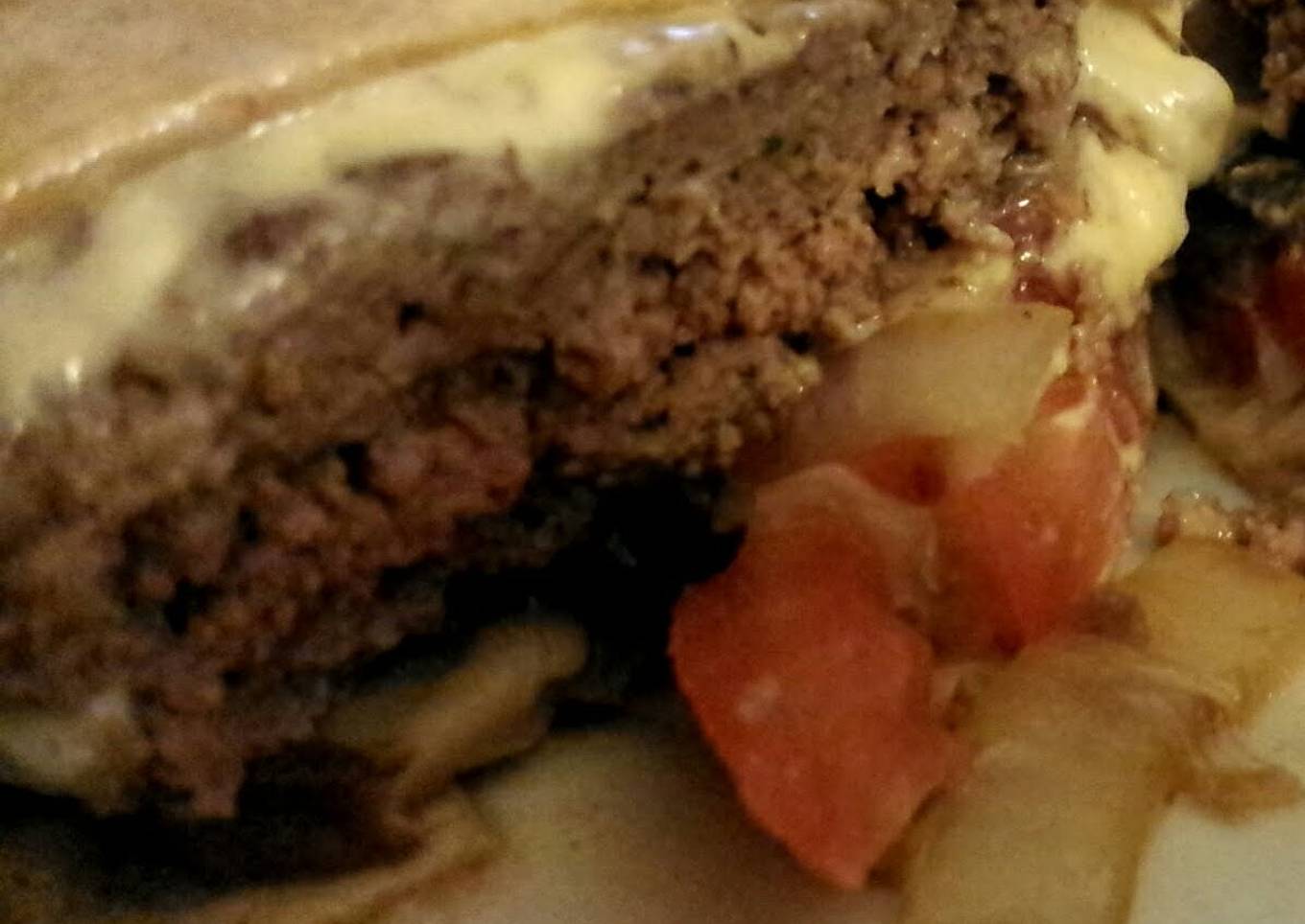- Leaving grease in pan, add butter. Turn heat to high, and add mushrooms and onions. Sautée until soft and fully cooked.