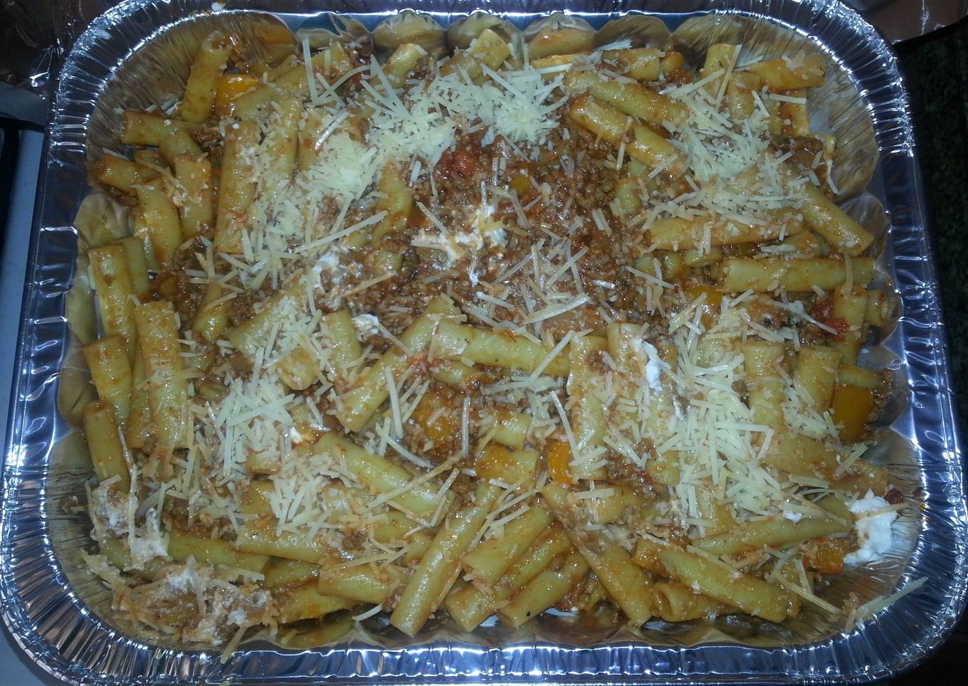 - Just keep laying the ziti and cheese's like a lasagna until everything is in one pan.