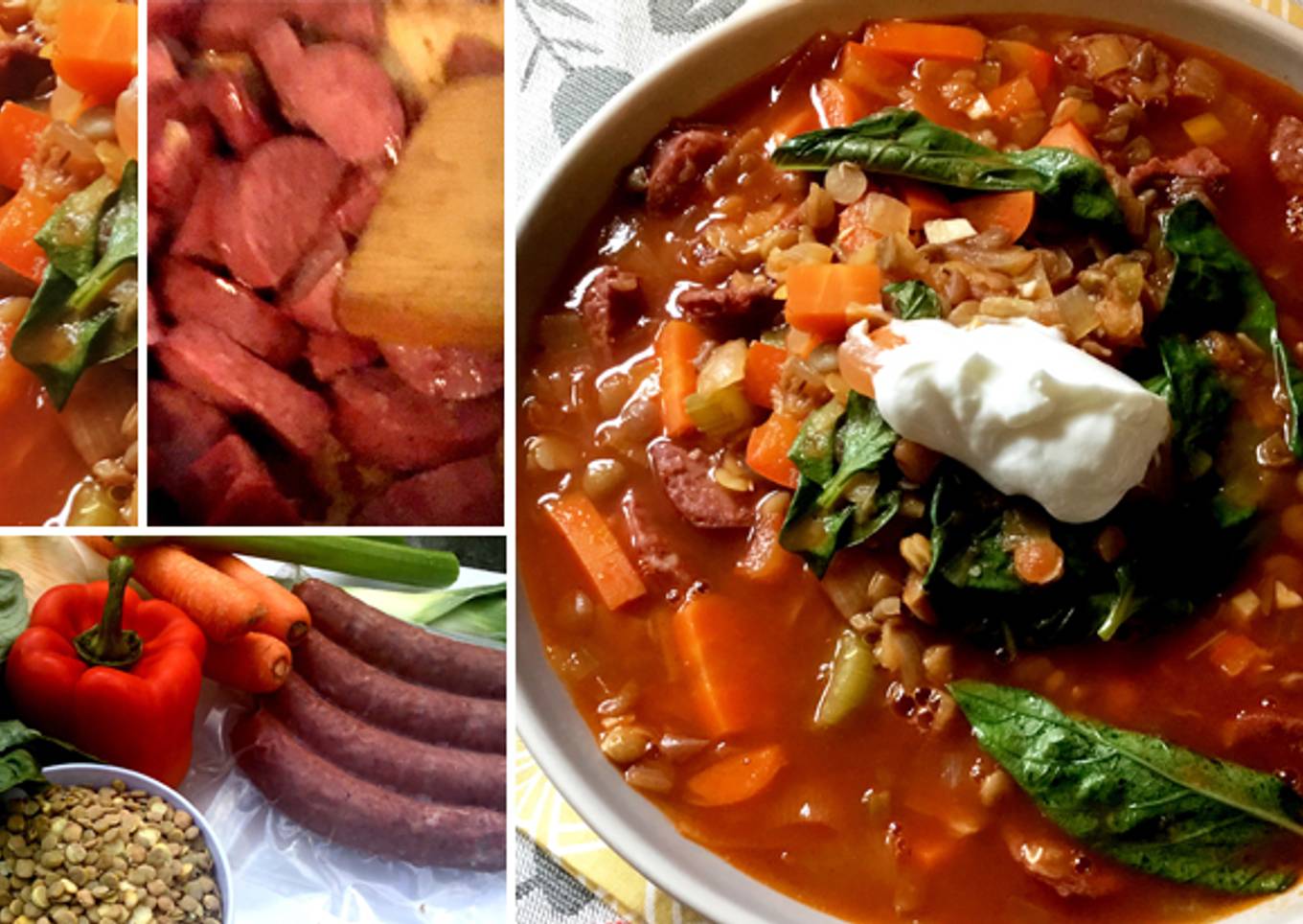 Instructions to make Fullblood Wagyu Kielbasa And Lentil Soup
