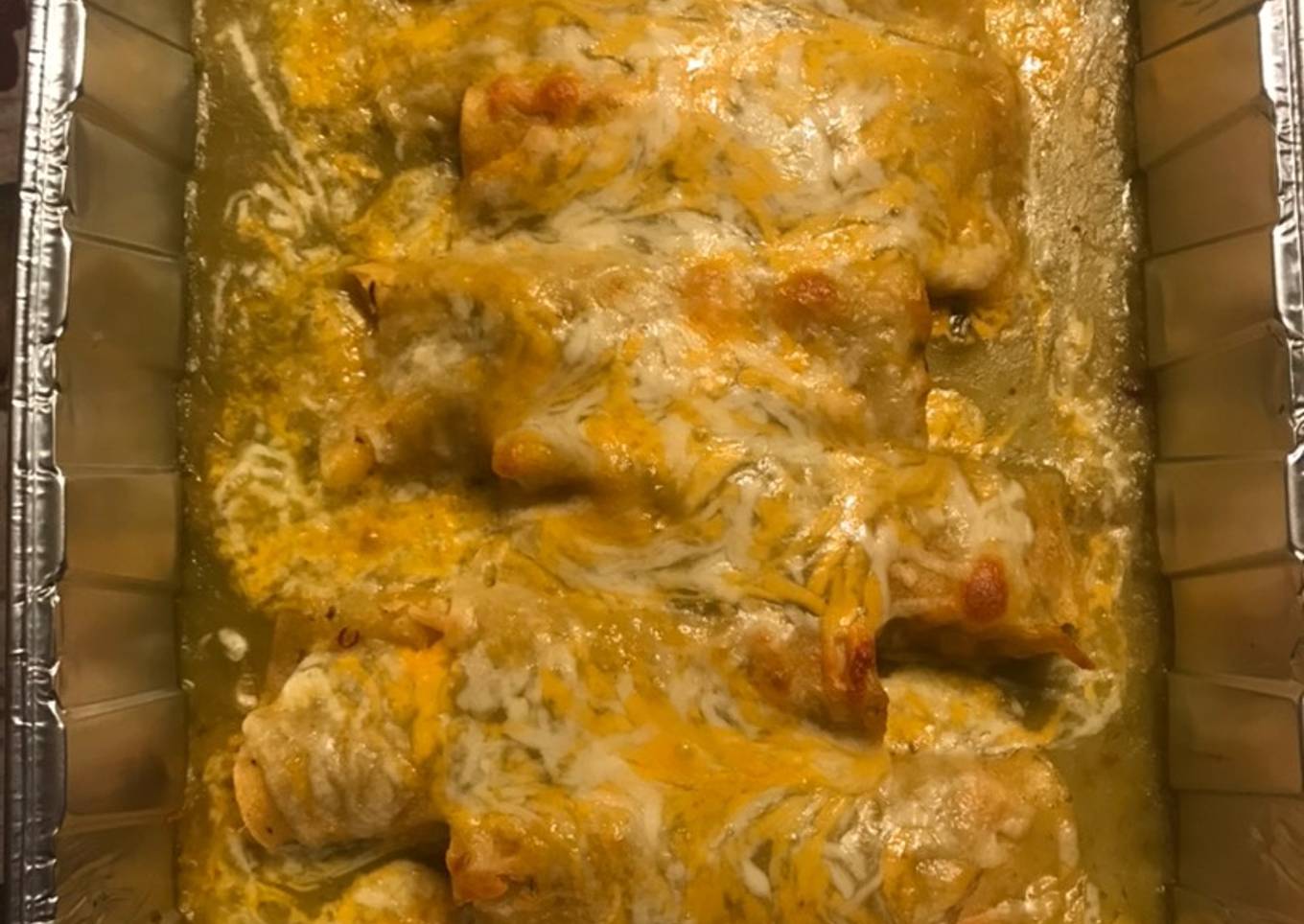 - Prepare two 13x9 pans by adding a little enchilada sauce to cover the bottom.