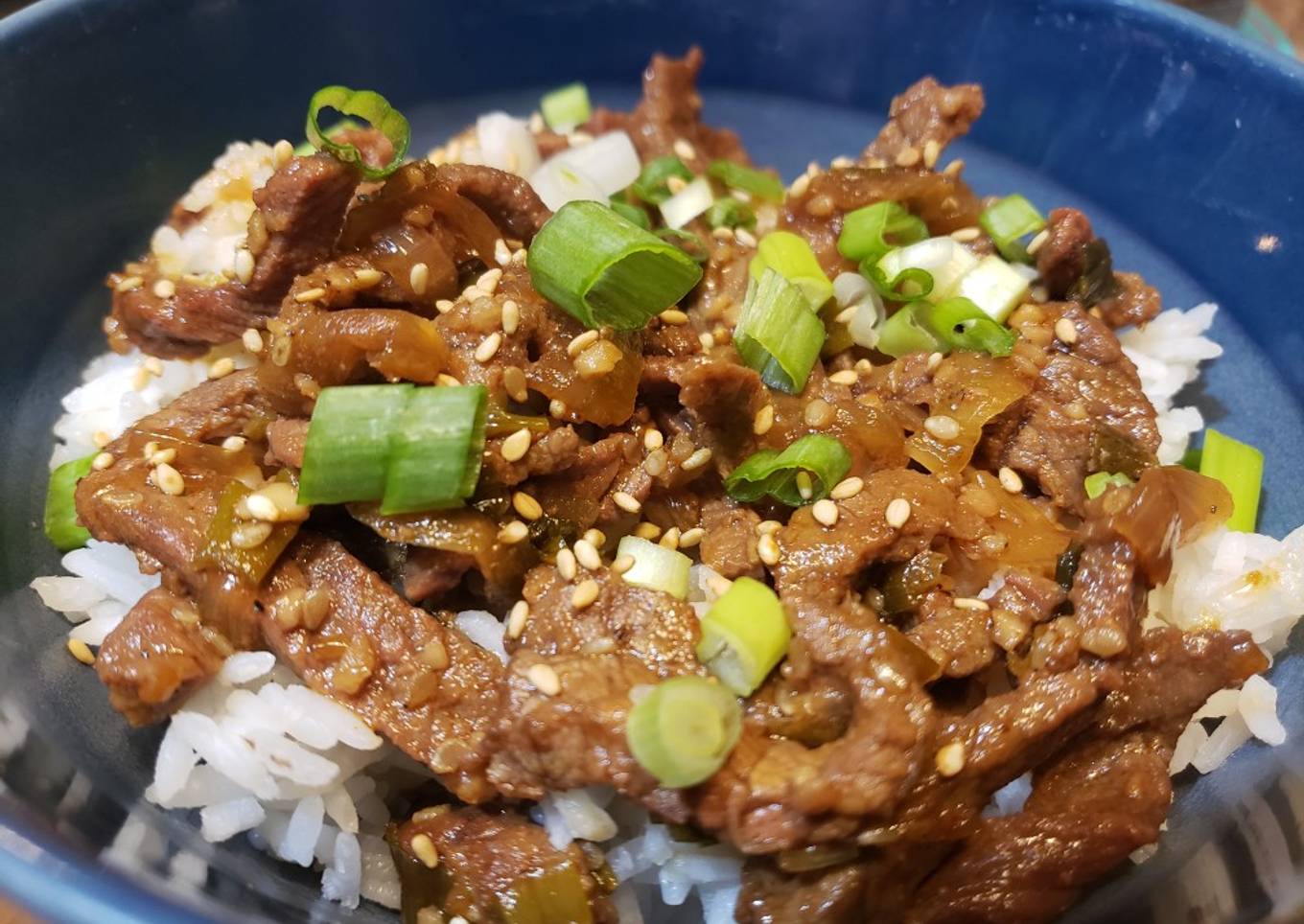 - Serve on white rice and top with sesame seeds and scallions.
